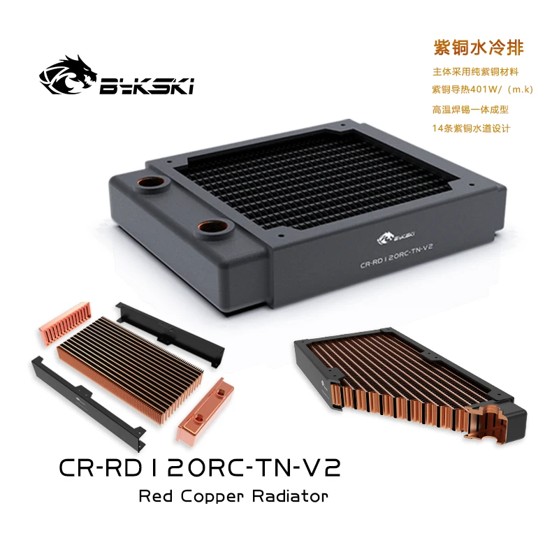 Very Good - Bykski 30mm Thick 120mm Length Copper Single Row Radiator Computer Water Discharge Liquid Heat Sink for 12cm Fans B-RD120-TN