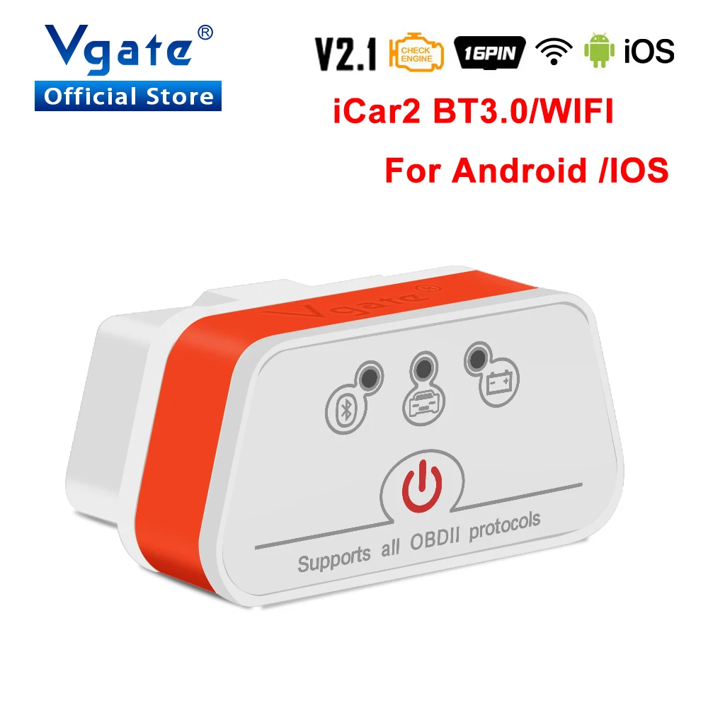 On Sale - Vgate iCar2 ELM327 v2.1 car Diagnostic Tool Wireless OBD OBD2 wifi for Android/IOS Auto Scanner Elm 327 odb2 Scaner Code reader