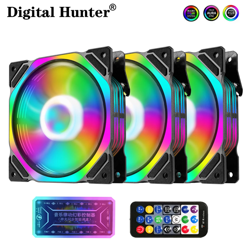 120mm CPU Cooling Fan RGB Heat dissipation 3pin 5v aura sync 12cm pc computer Cooler argb Silent Case Fan with Controller