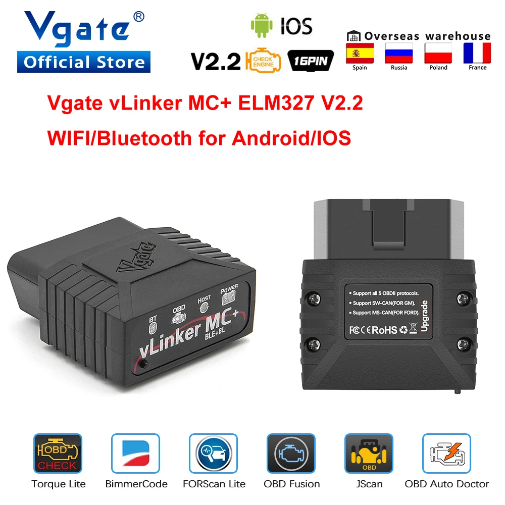 Very Good - Vgate vLinker MC+ ELM 327 V2.2 Bluetooth-Compatible Car Scanner OBD2 wifi Auto Diagnostic Tool ELM327 OBD 2 ODB2 Bimmercode