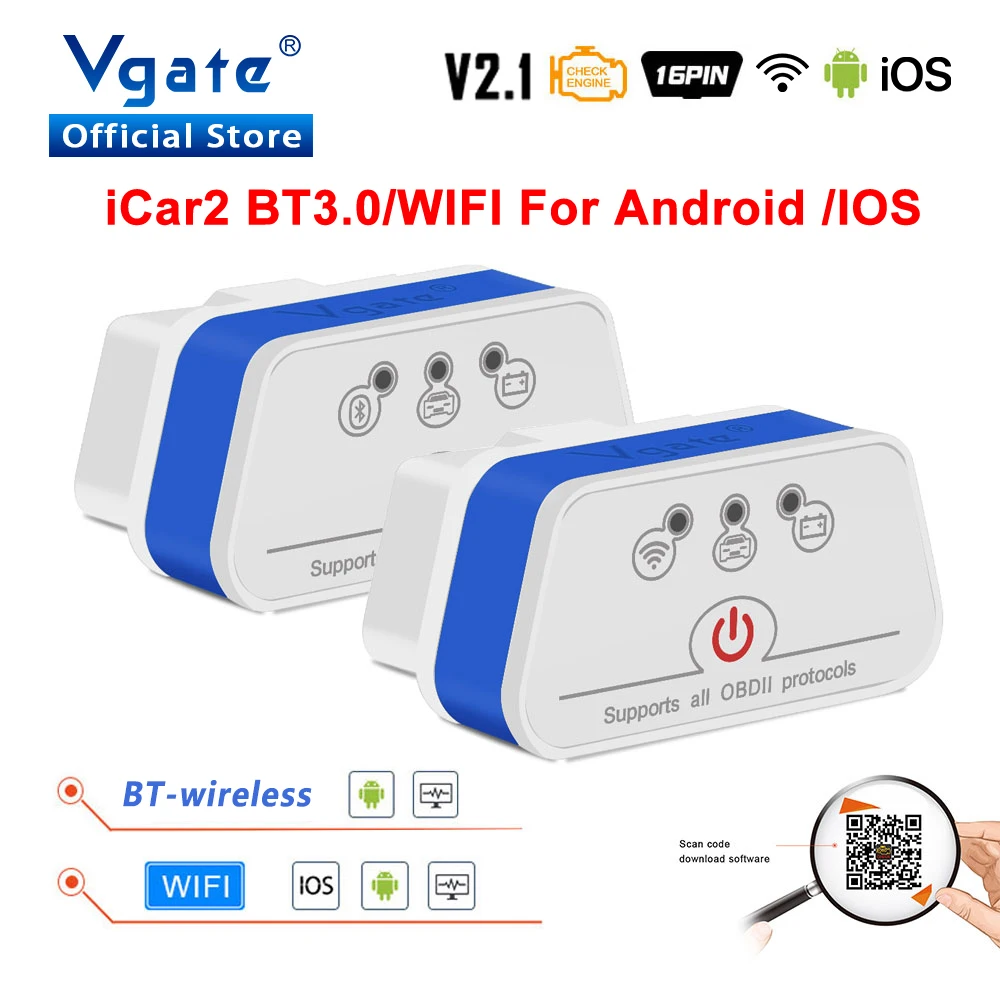 Very Recommended - Vgate iCar2 elm 327 wireless Code Reader wifi Auto Diagnostics Tools obd2 Auto scanner ELM327 V2.1 wifi OBD 2 interface adapter