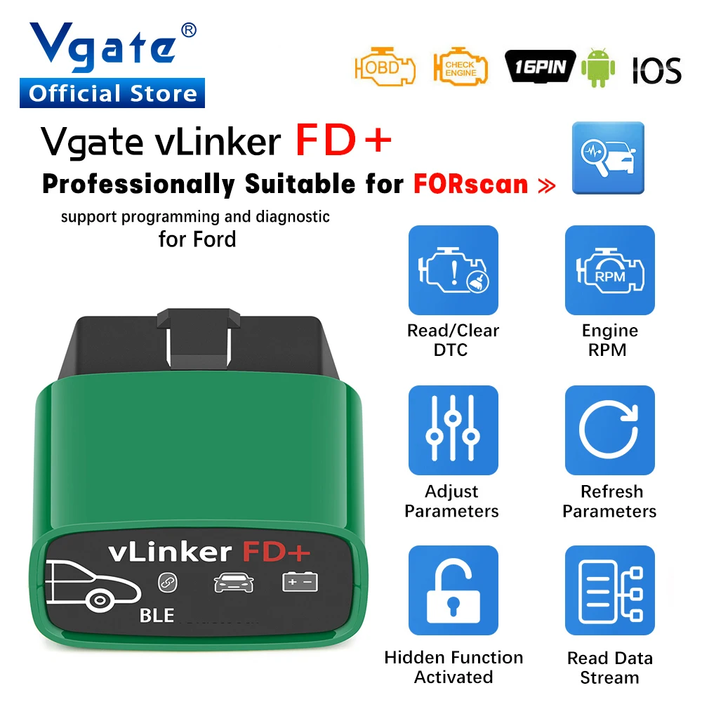 Vgate vLinker FD+ ELM327 BT4.0-Wireless FORScan For Ford wifi ELM 327 OBD2 Car Diagnostic OBD 2 Scanner J2534 MS CAN Auto Tools