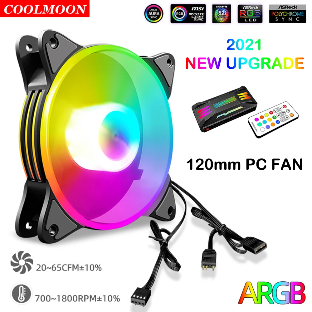 special - Coolmoon 120mm PC Chassis ARGB Fan 5V 3Pin 4Pin PWM Cooler Magic Moon Heatsink Radiator for Computer Water Cooling Accessories