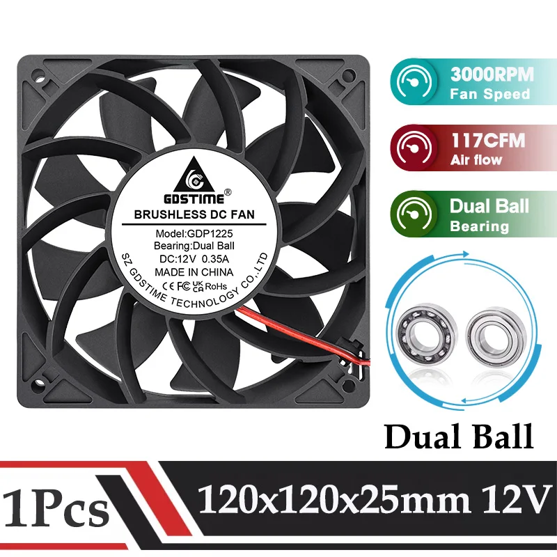 Very Good - GDSTIME 120x25MM DC Brushless Cooler 12CM 120MM PC Computer CPU Radiator 12025 for Btc Machine Chassis Workstation Cabinet