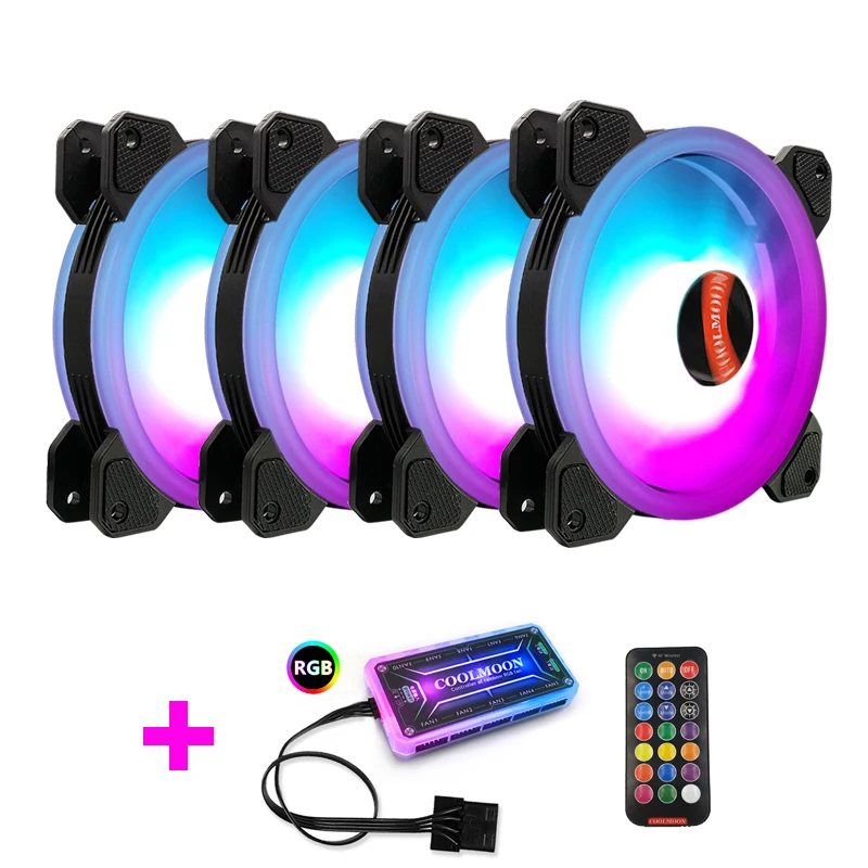 Very Recommended - Coolmoon RGB PC Fan 120mm Cooling Cooler Fan with Controller for Computer Silent Gaming Case Computer Cooler Cooling Case Fans