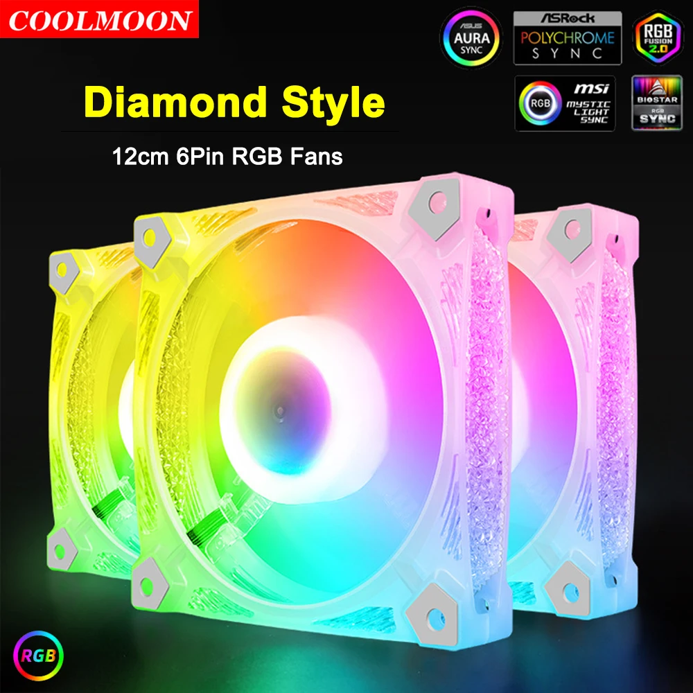 On Sale - Coolmoon 120mm Fan RGB Cooling Ventilador 6PIN Computer Case Chassis Fans 12V Silent Adjust 12cm for Aura Sync PC Accessories