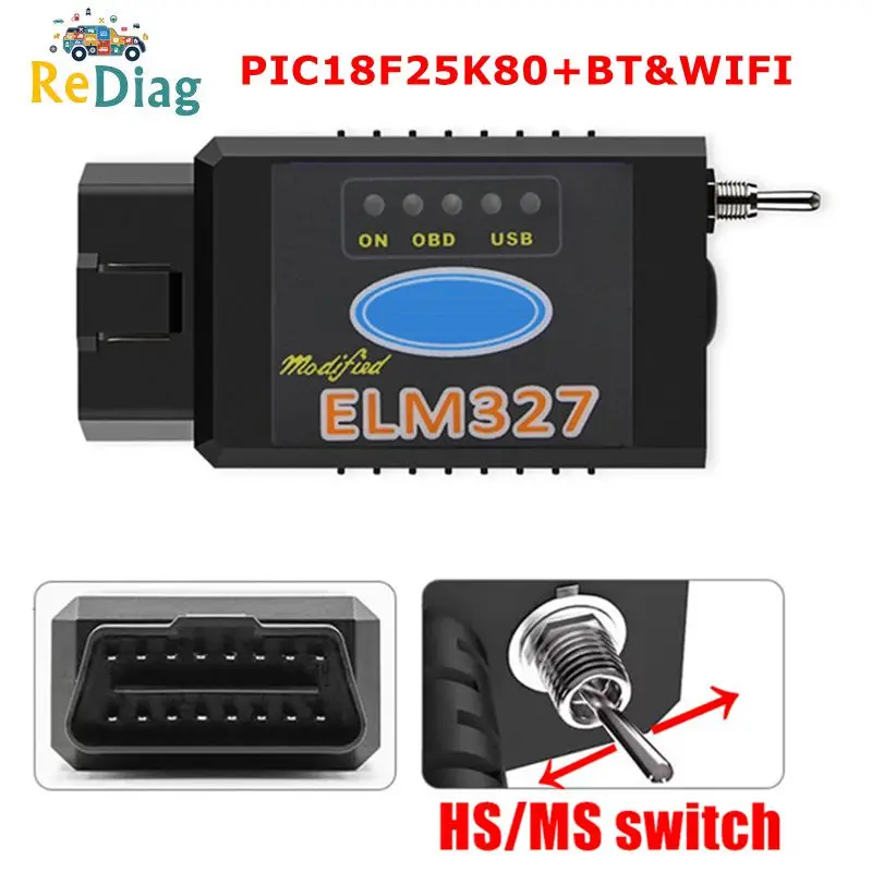 Sale - ELM327 USB PIC18F25K80 Chip with Bluetooth-compatible &WIFI for Ford HS CAN/MS CAN switch Forscan ELM 327 OBD2 Code Reader Alternatives