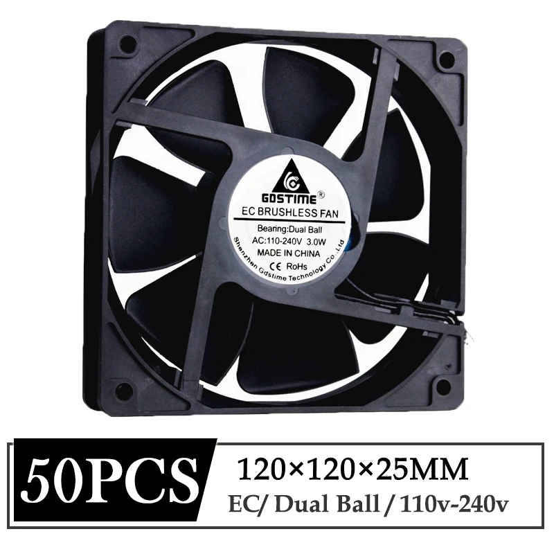 Excellent - 50Pcs/Lot Gdstime EC 110V-240V 120mm 120mmx25mm Dual Ball Brushless Computer Case Radiator 12025 12cm AC 220V Cooling Fan